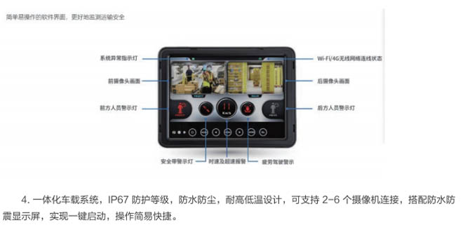 4.智能集成化設(shè)計(jì),一鍵開(kāi)啟車載系統(tǒng),AI精準(zhǔn)識(shí)別、人車防撞、車車防撞、盲區(qū)防撞等。